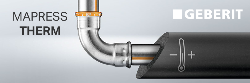 Let op: Mapress Therm is niet geschikt voor drinkwaterinstallaties, vanwege de specifieke materiaalcombinaties die niet voldoen aan drinkwaterkeuringen. Voor die toepassingen zijn andere lijnen binnen het Geberit Mapress-assortiment beter geschikt.
